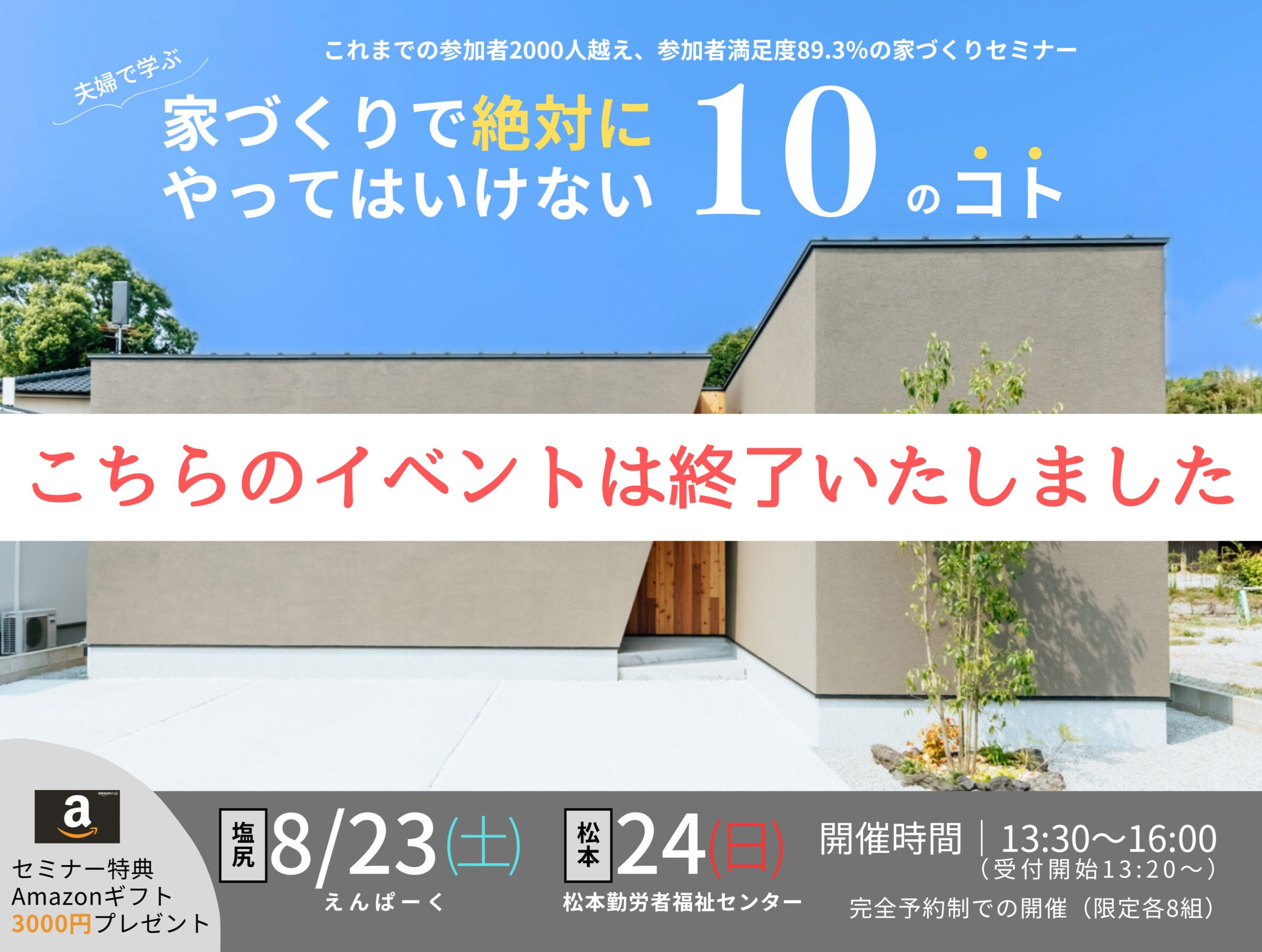 満足度89.3%を誇る大人気の家づくりセミナーを松本市と塩尻市で開催いたします!
